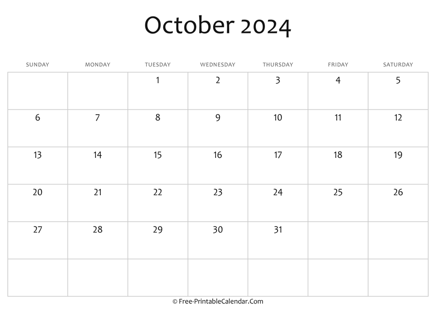 Editable 2024 October Calendar - A blank calendar for october 2024 in horizontal layout. Download, print and use it at home, office or school for free.