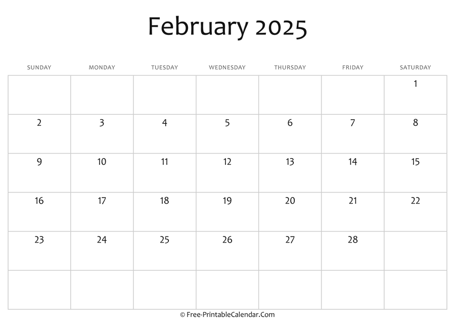 Editable 2025 February Calendar - A blank calendar for february 2025 in horizontal layout. Download, print and use it at home, office or school for free.