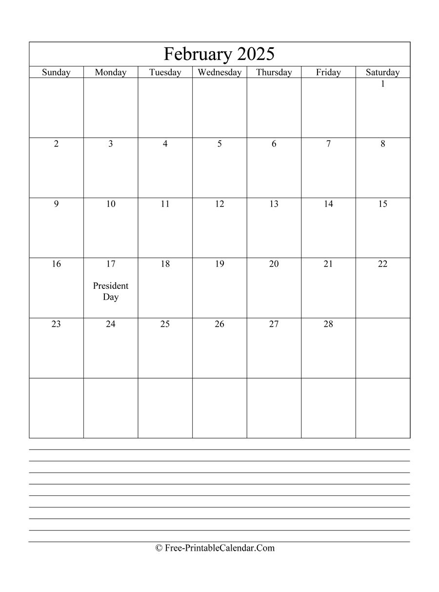 This calendar is free for personal use only and if you think it is useful please link to us. Just copy & paste the following code to your site or blog to share February 2025 Editable Calendar with Notes.